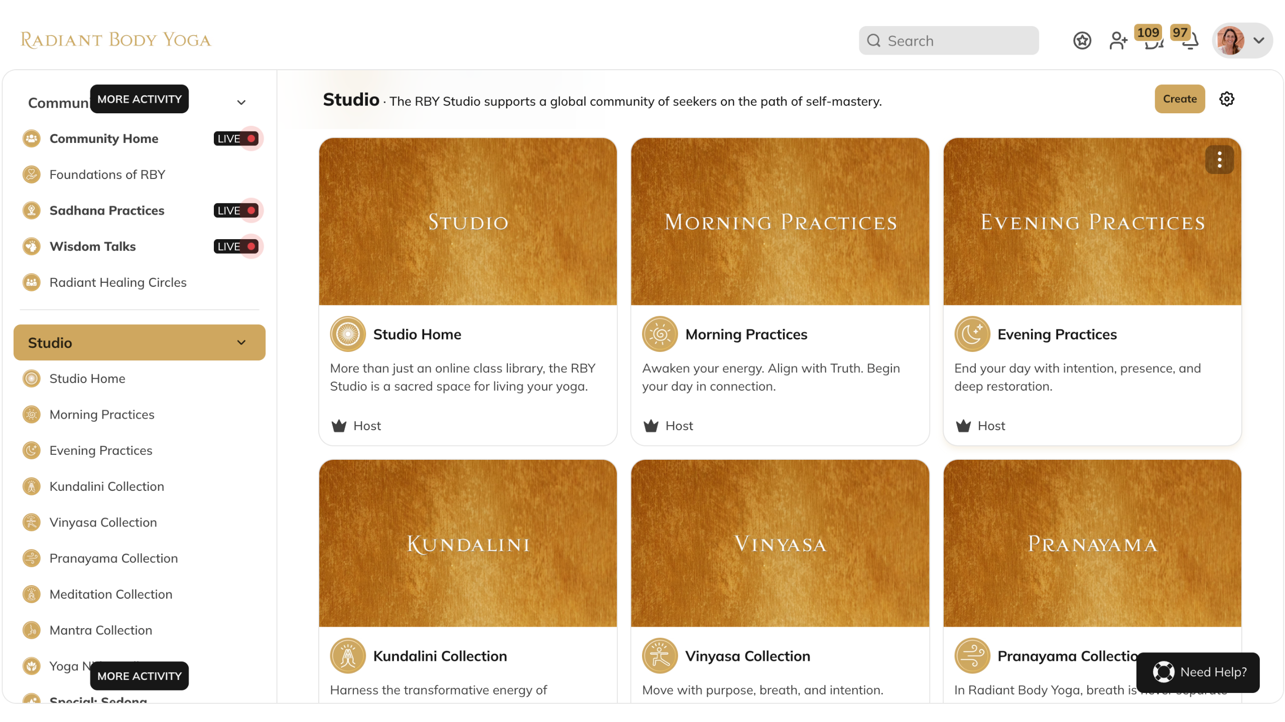 The Radiant Body Yoga™ Studio is a living library of teachings, transmissions of ancient practices, made accessible for modern life.