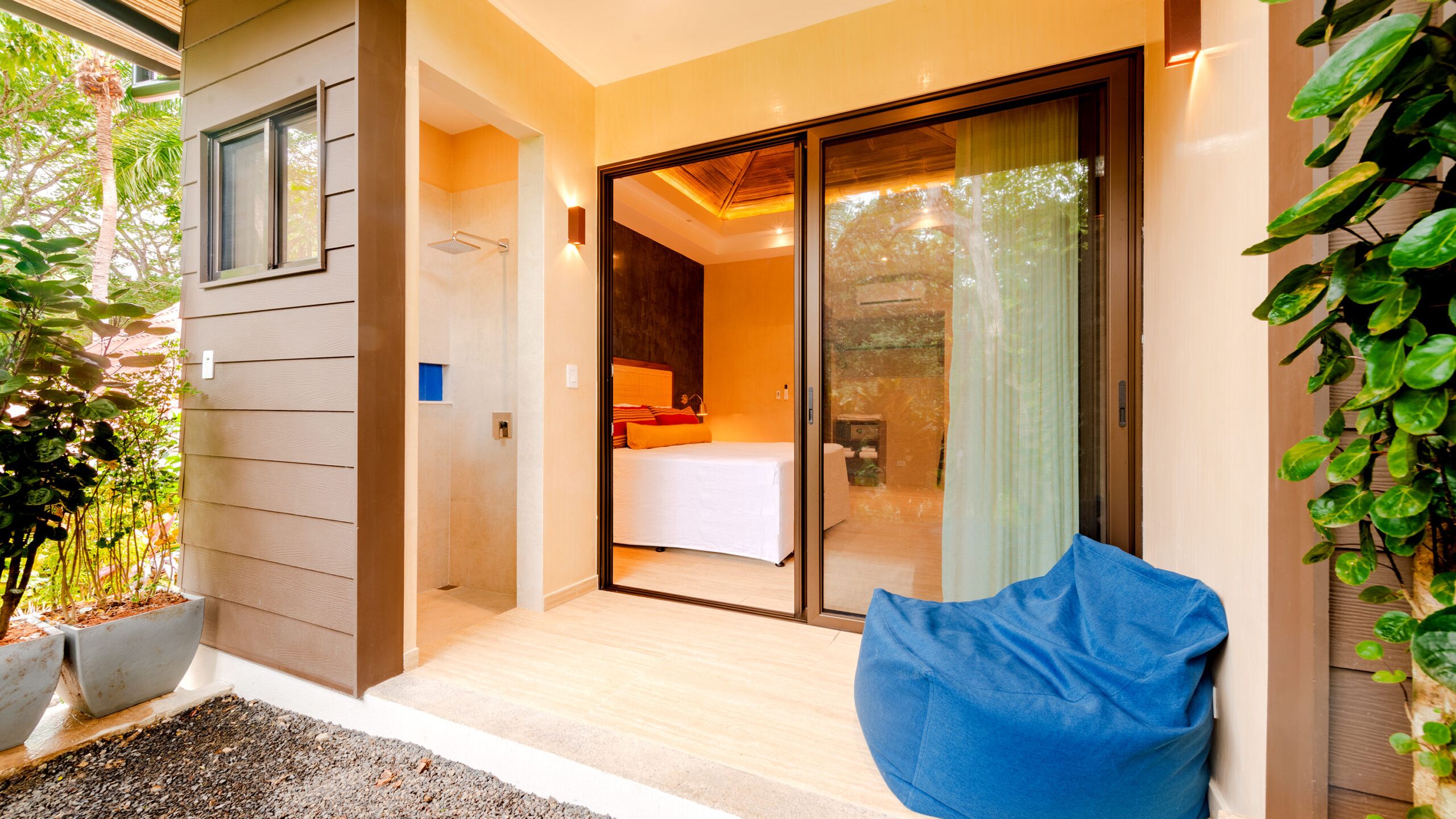 The Pacifico Cottage is tucked away amidst the lush tropical gardens and close enough to the sandy Pacific beach. The sound of the ocean will rock you to sleep! These beautiful rooms have one queen-size bed, bathroom, outdoor shower, AC, fan, private porch and daybed.